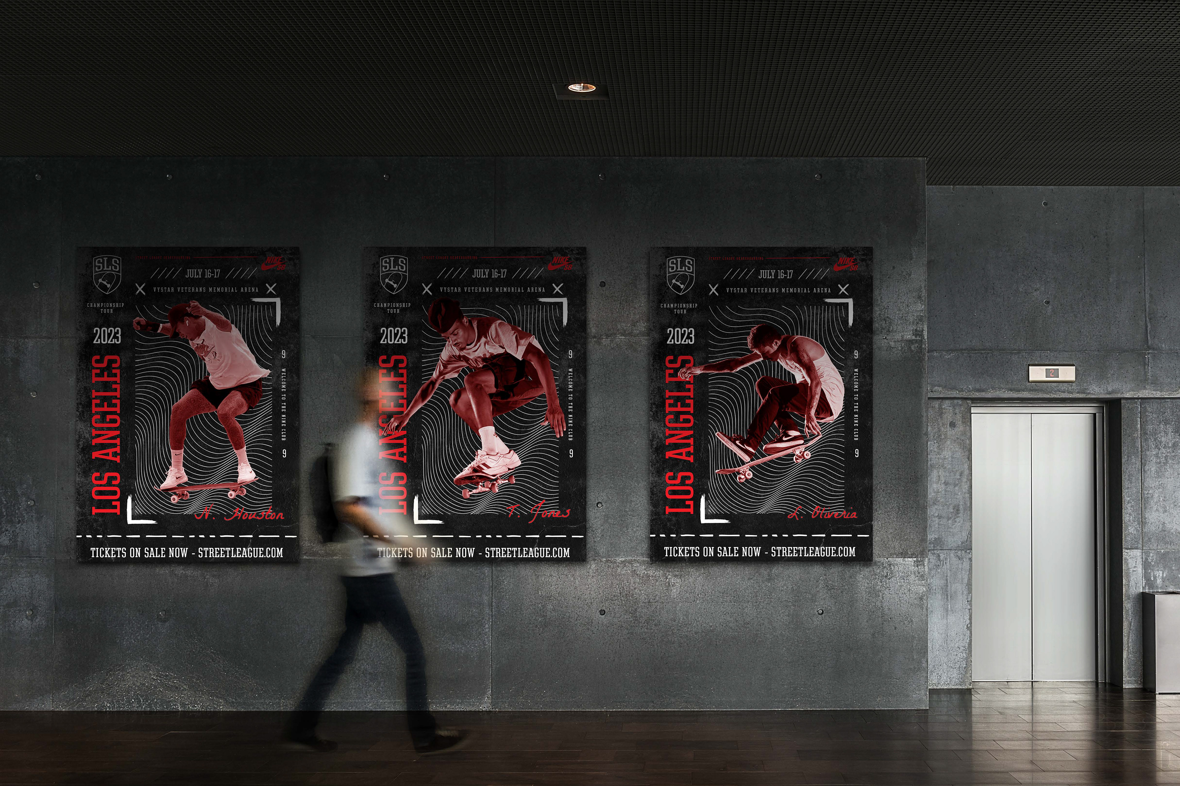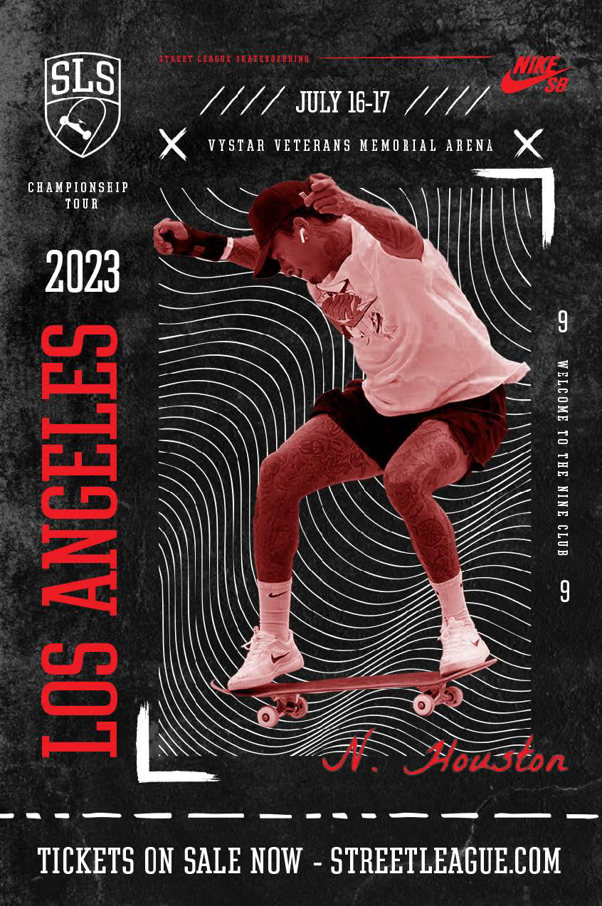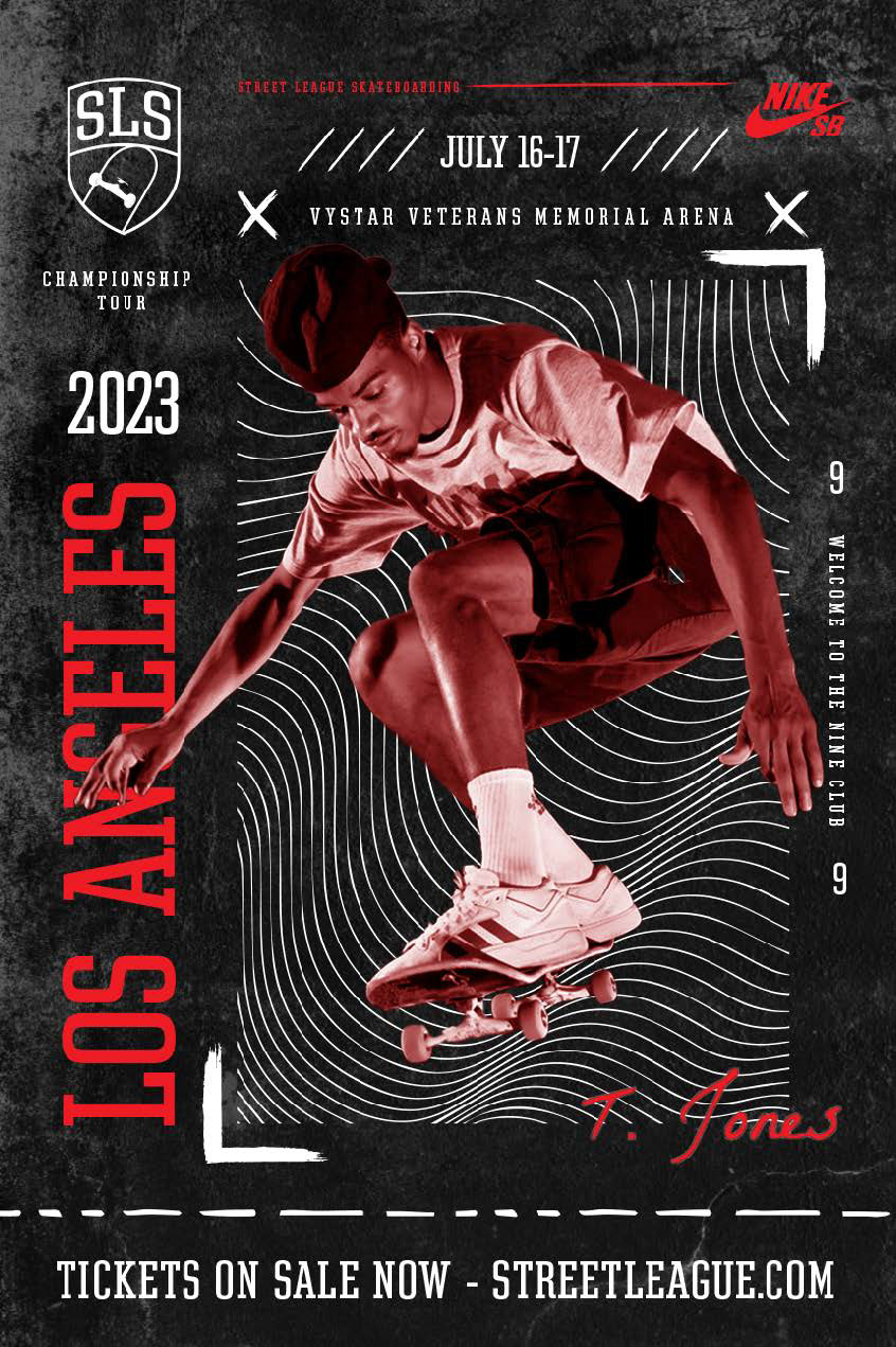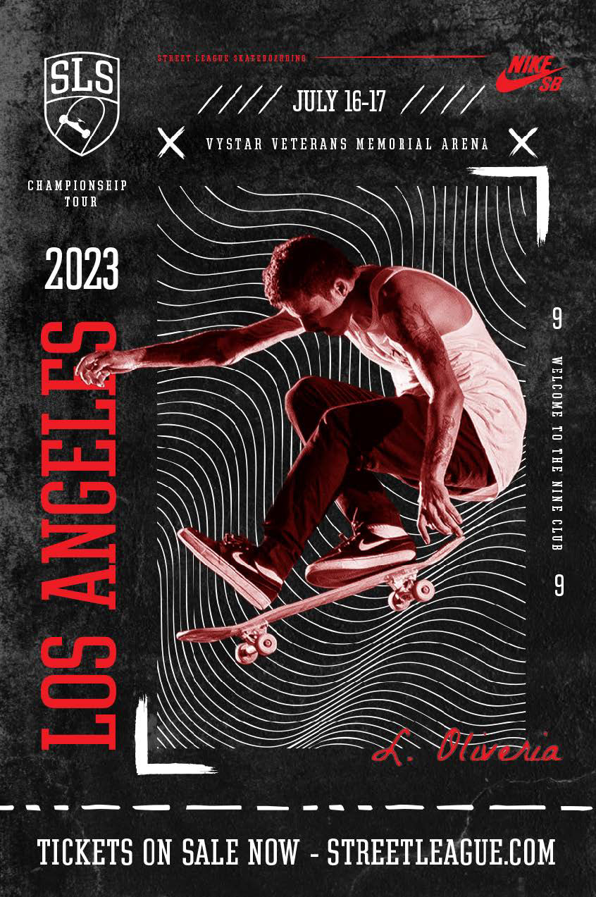 This project is a proposed design style for the 2023 Los Angeles Street League Skateboarding tournament.